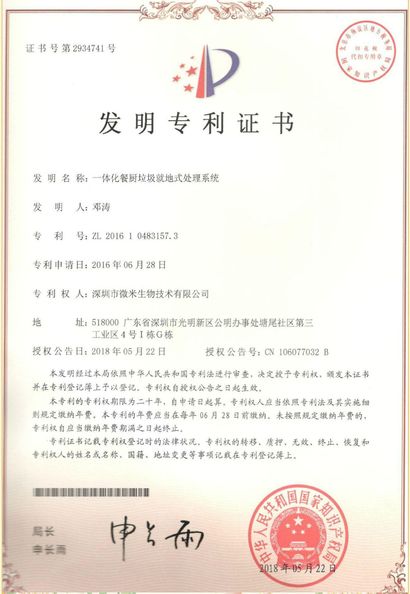 为了响应国家“金山银山不如绿水青山”的环保政策,也为了解决家庭饭后最大的垃圾处理难题,深圳微米生物技术研发团队引进德国先进工业技术,经过反复试验,自主研发了启动开关型的厨余垃圾处理器,并获得了多项国家专利。