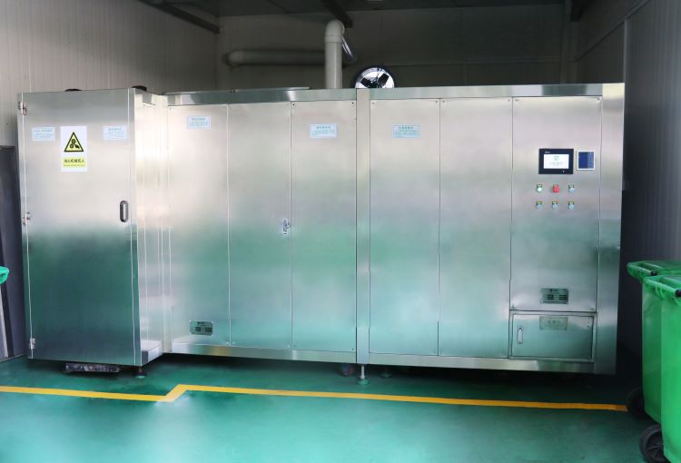 一体化餐厨垃圾处理设备即餐厨垃圾处理一体机,是一种将餐厨垃圾进行处理、压缩、高温好氧发酵等多个功能融合于一体的机器设备,通过机器自动化处理达到减少污染、减轻工作负担、提高处理效率的目的。餐厨垃圾处理一体机采用的是微生物高温好氧发酵处理技术,将餐厨垃圾在机器内进行处理,将油脂、水分、有机物等分解成二氧化碳、水和有机肥原料等物质,达到减少垃圾体积、减轻处理成本的效果。