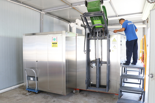 以微米生物小型湿垃圾处理设备为例,湿垃圾处理设备的处理流程是这样的: