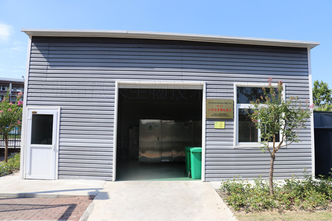 一中初中部餐厨废弃物就地式处理推广项目于2016年8月30日投入使用,采用微米生物餐厨垃圾处理设备,核心工艺为微生物高温好氧堆肥技术,日处理餐厨垃圾1000kg,设备房占地面积约80㎡,产出物可用于园林种植及绿色食品栽培等应用。