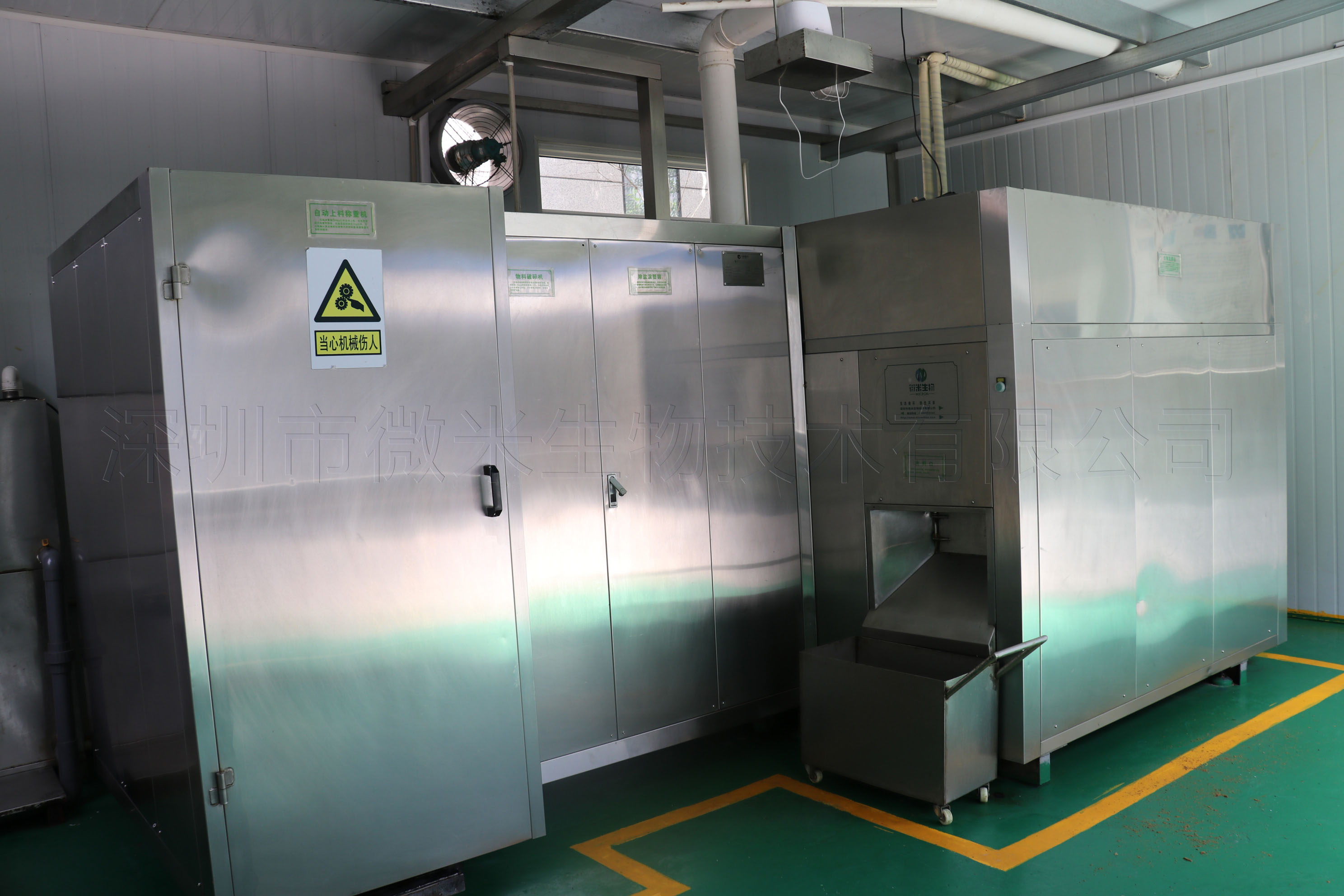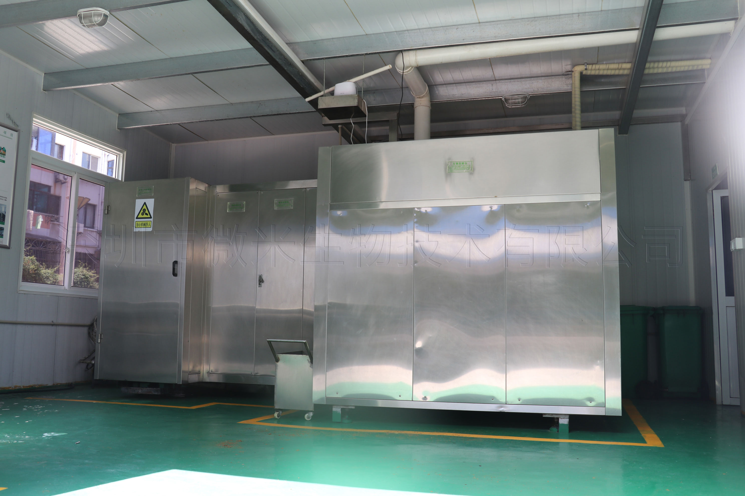 1000kg 江阴行政服务中心餐厨废弃物就地式处理推广项目于2016年9月17日投入使用,通过微生物高温好氧堆肥技术,日处理厨余垃圾1000kg,设备房占地面积约80㎡,产出物可用于园林种植及绿色食品栽培等应用。