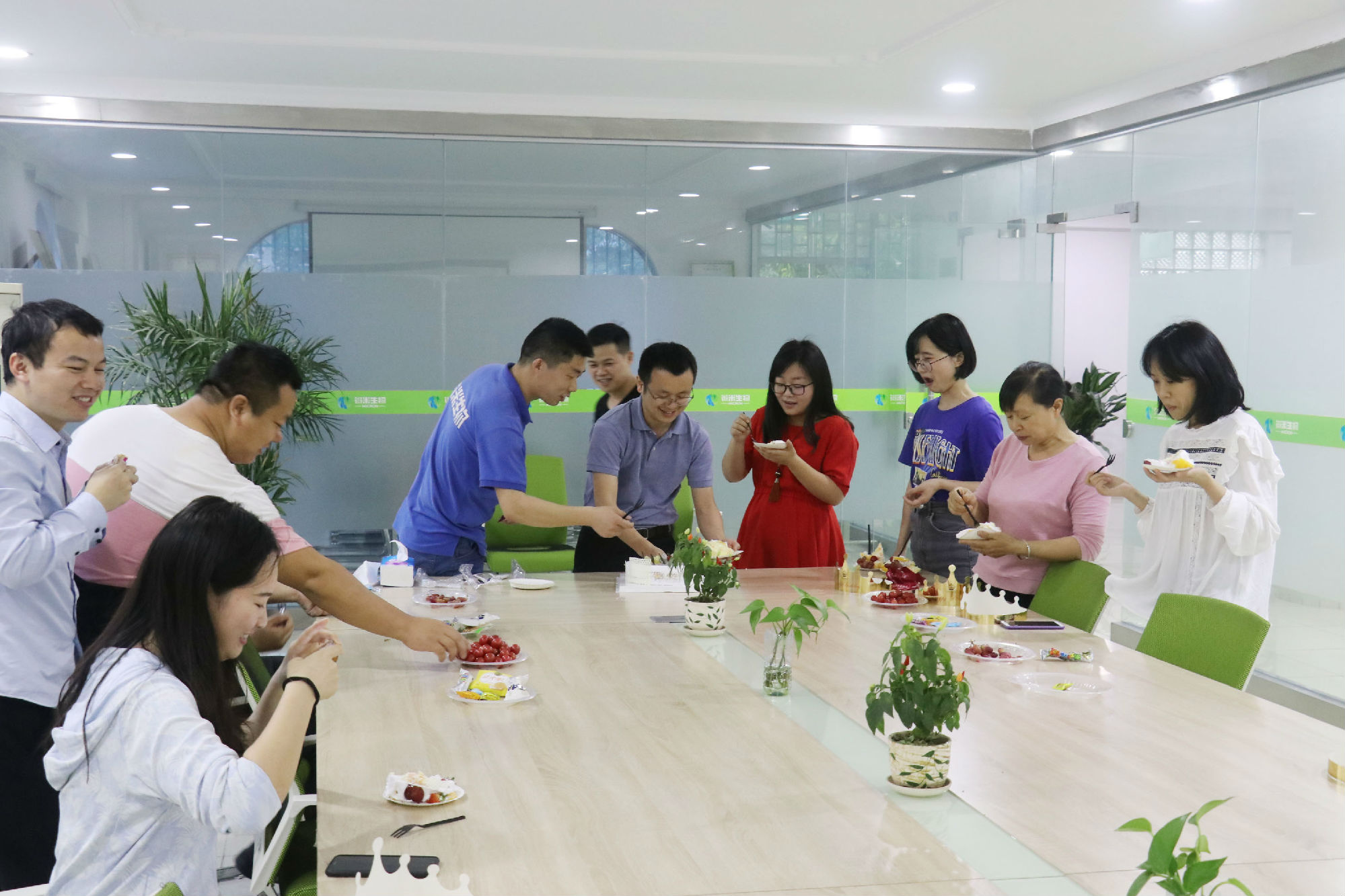 大家围在一起,吃生日蛋糕、吃水果、玩游戏、写下这一年最美好的心愿……共同分享着生日的喜悦,感受着微米这个大家庭的温暖。